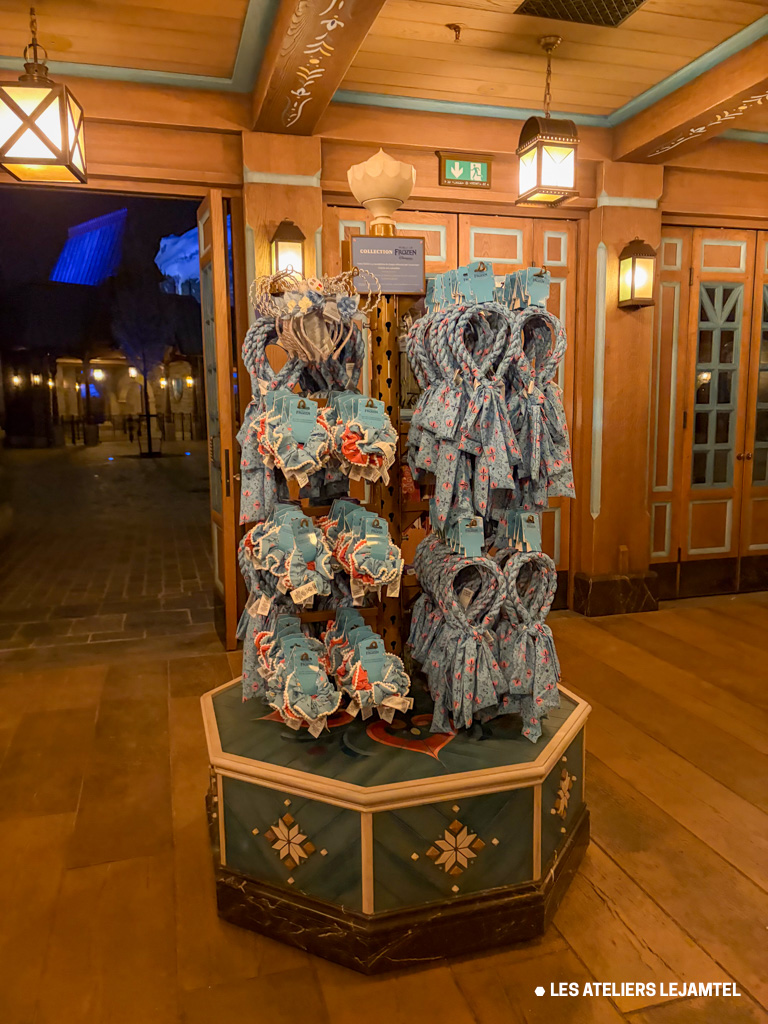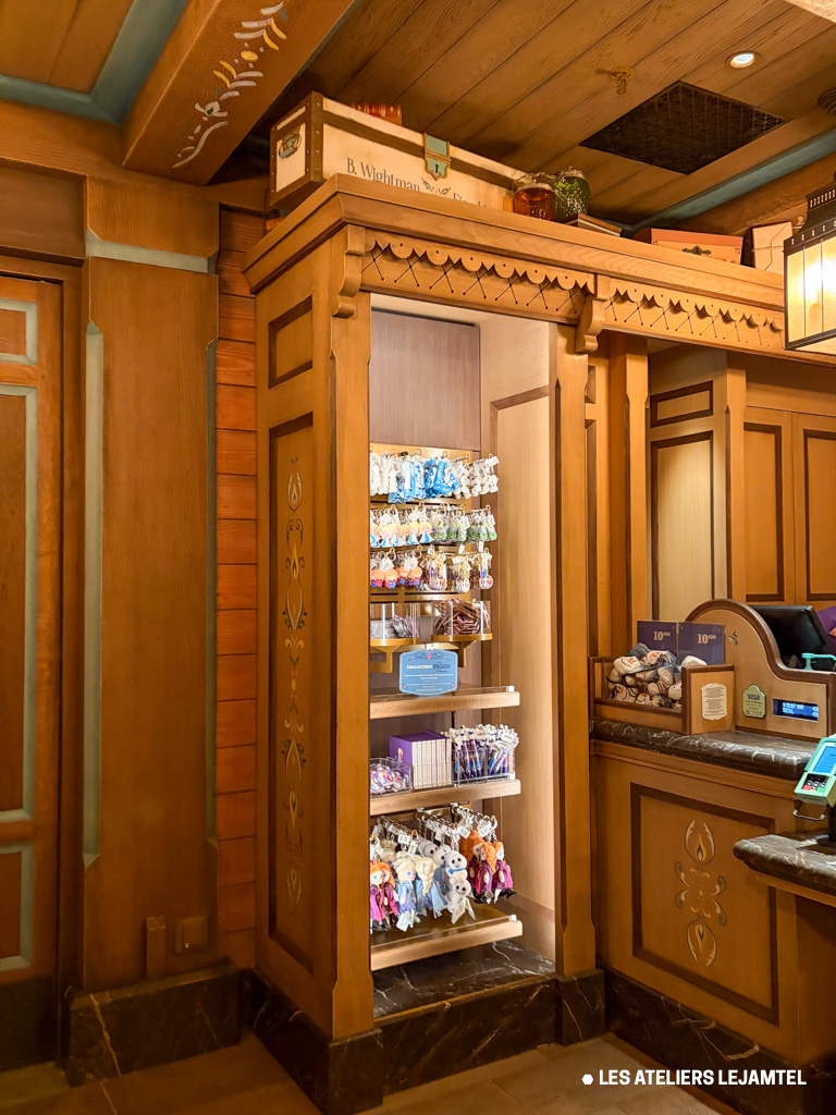 Le quartier World of Frozen ne se limite pas à une attraction : c’est un voyage sensoriel. Entre la Montagne du Nord, les boutiques inspirées de l’artisanat scandinave et le restaurant offrant une vue imprenable sur le lac d’Adventure Bay, chaque élément a été pensé pour recréer l’ambiance du film. Les façades, les enseignes et les meubles en bois, ornés de rosemaling, sont autant de détails qui font la différence et transportent les visiteurs dans un monde féerique