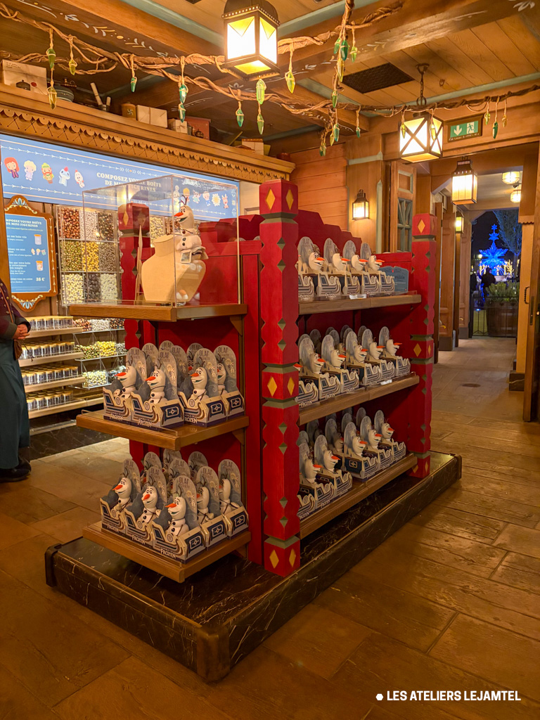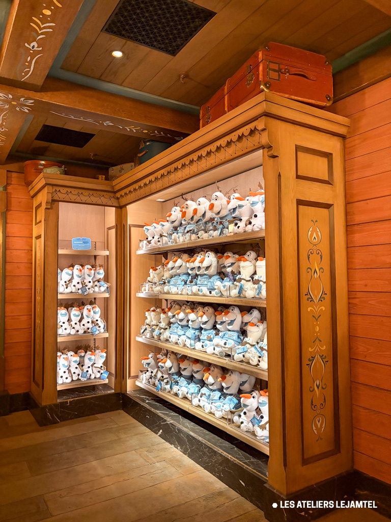 - Meubles de merchandising : nous avons créé les meubles de présentation des produits dérivés de La Reine des Neige, peluches Olaf, serre-tête Elsa… les meubles ces éléments s’intègrent parfaitement à l’univers du magasin, offrant à la fois une esthétique soignée et une fonctionnalité optimale pour les visiteurs.