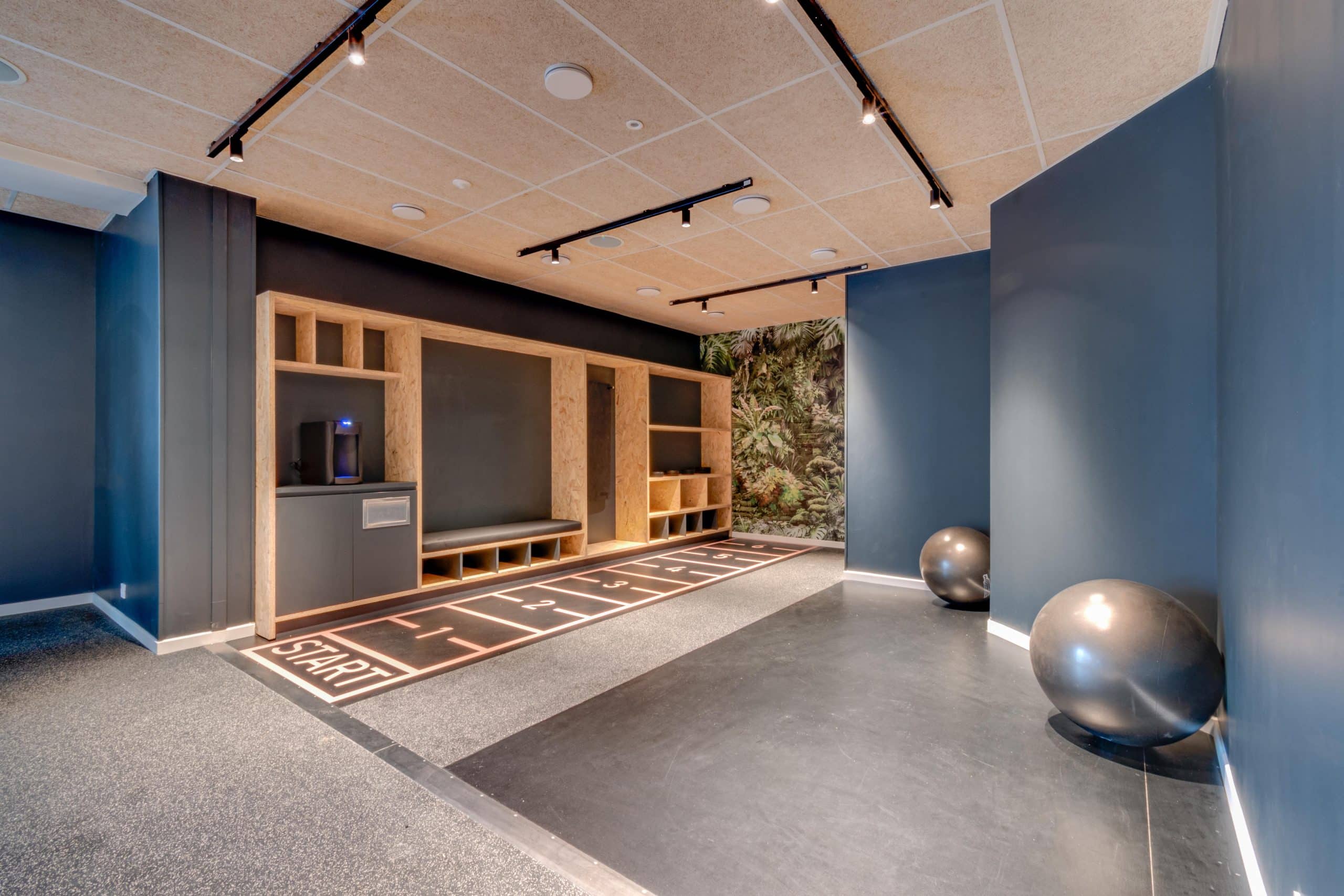 - Miroir salle fitness avec LED intégré et grand rangement fitness en OSB : pour un espace sportif optimisé.