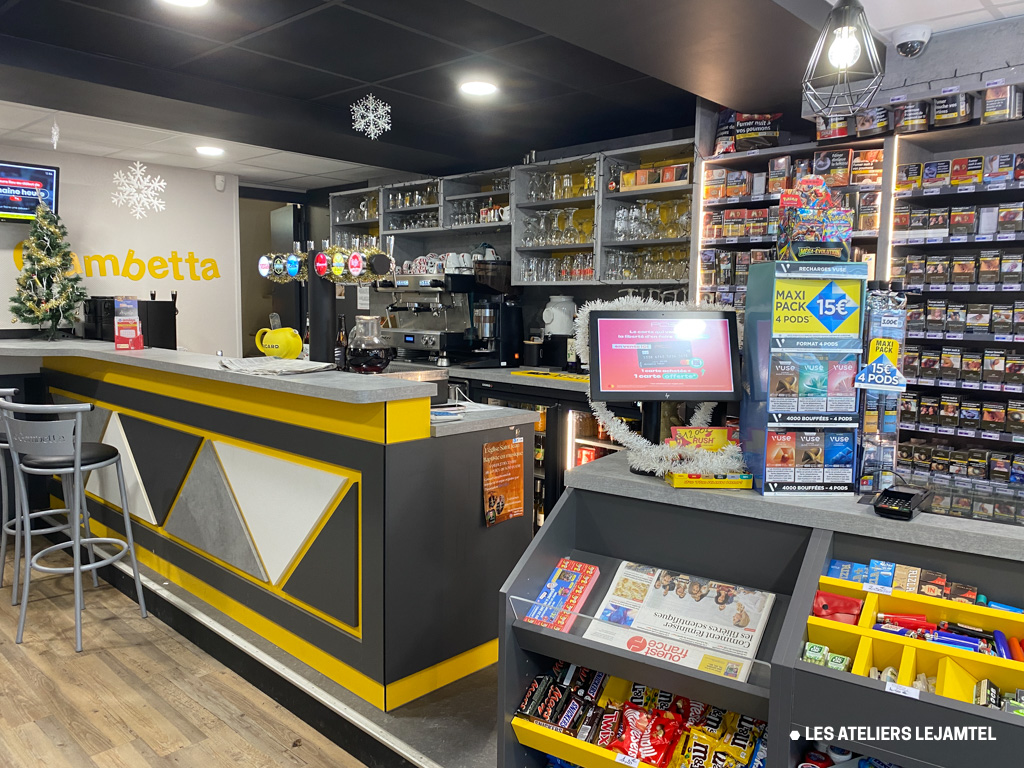 La rénovation du Bar Tabac Presse Le Gambetta est un exemple concret de notre savoir-faire en agencement bar professionnel. Grâce à une approche sur mesure, nous avons créé un espace moderne, pratique et accueillant, qui répond parfaitement aux attentes des propriétaires et de leur clientèle.