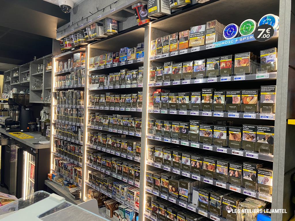 - Un grand linéaire tabac sur le mur arrière, pour une organisation claire et accessible.